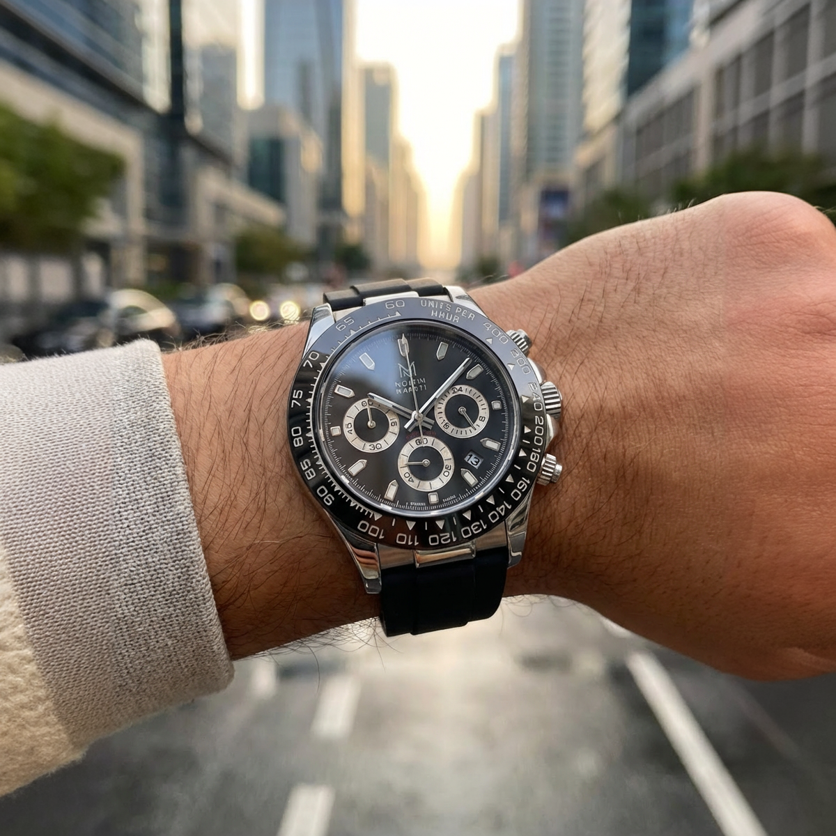 Découvrez notre montre chronographe au design raffiné , animé par un mouvement quartz japonais de haute précision.